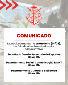 Excepcionalmente, na sexta-feira (01/08), horário de atendimento do setor administrativo: