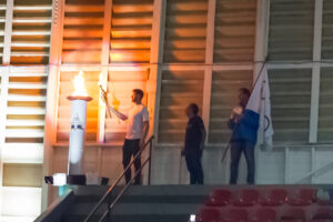 Bruninho, jogador de voleibol de Campinas, Vôlei Renata, e ex Seleção Brasileira, foi o responsável por conduzir a tocha olímpica e ascender a pira olímpica, que deu inicio ao calendário de jogos.