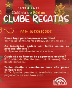 A Licere apresenta a Colônia de Férias 2026 no tradicional Clube Regatas (Unidade Cambuí)! E a melhor parte? É ABERTA AO PÚBLICO (não precisa ser sócio para participar)! 🎉