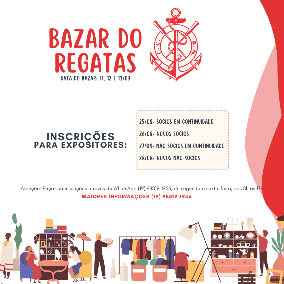 Bazar do Regatas Data do bazar: 11, 12 e 13 de setembro Inscrições pelo WhatsApp (19) 98819-1956[…]