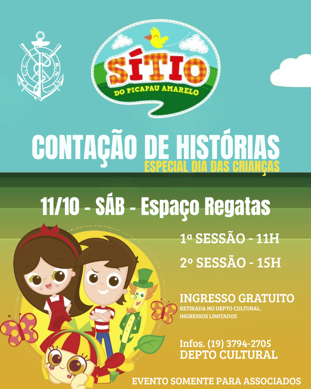 Clube Regatas Apresenta: Contação de Histórias – Sitio do Pica Pau Amarelo – Especial dia das Crianças![…]